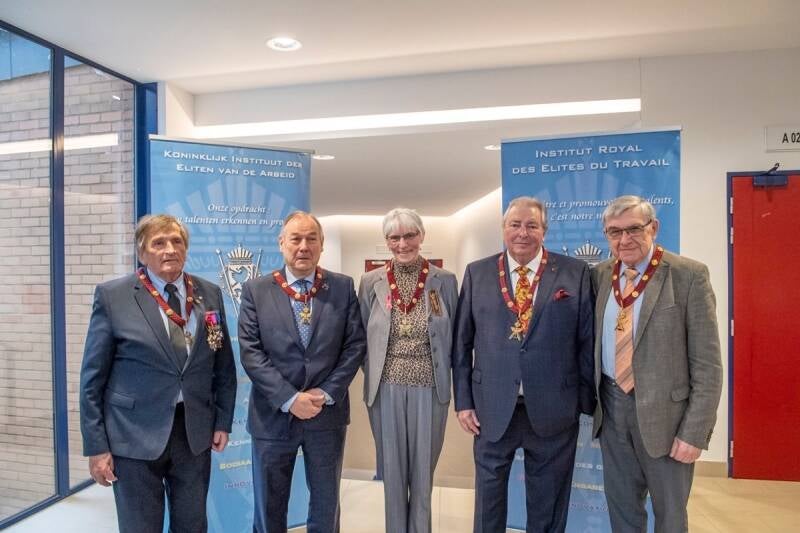 JANSSENS Claude, Juge consulaire honoraire, Officier de l’ordre de la couronne (promu Commandeur le 24.04.2024), Economiste d’entreprises (er), Auteur, et COLSON Jacques, Chevalier de l’ordre de Léopold, Expert-comptable certifié et Conseil fiscal certifié, tous deux antépénultièmes Doyens d’honneur du Travail des professions comptables et fiscales et Doyens d’honneur du Travail émérites. CLAES Micheline, Juge consulaire, Doyen d’honneur du Travail du secteur Audit et des professions comptables et fiscales, Expert-comptable et fiscal interne certifiée, Juriste d’entreprise, Médiatrice en matières civiles et commerciales, Licenciée en droit, COGEN Marc, Expert-comptable et Conseil fiscal certifié, Avant dernier Doyen d’honneur du Travail des professions comptables et fiscales et Doyen d’honneur du Travail émérite, Président du CO sectoriel et PAIROUX Willy, Expert-comptable et Conseil fiscal certifié, Doyen d’honneur du Travail émérite du secteur comptabilité, Vice-président honoraire de l’IEC-IAB.